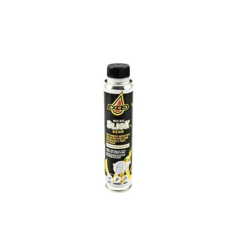 Additivo sintetico a lunga durata per il trattamento di scatole cambio, differenziati, ponti posteriori a base nanotecnologica polarizzata PTFE + Nitruro di boro. Microslick GEAR riveste le superfici metalliche facendo una vera ricostruzione delle parti metalliche usurate e riduce attriti e usure dell'80%. Produce i seguenti risultati: riduce attriti, usure e resistenze meccaniche; rende il cambio più silenzioso; raddoppia la vita degli ingranaggi; abbassa i consumi di carburante e lubrificante; assicura la lubrificazione ai più severi regimi d'uso; protegge il cambio per 80'000 km. Modalità d'uso: Aggiungere all'olio nuovo. Azionare il motore per 15 minuti in percorso misto. Dosaggio: un flacone da 250ml serve a trattare una scatola cambio da 5 litri. Non utilizzare nei cambi automatici.