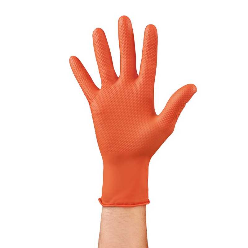 • Monouso, ambidestro, non-sterili, senza polvere lubrificante, polsino salvastrappi. • Spessore 0,22/0,25 mm • Elevata sensibilità, ottima destrezza e confort • Prodotto in nitrile ad elevata bio-compatibilità. • Privo di polvere e lattice. • Elevata resistenza allo strappo e lunga durata. • Colore di sicurezza arancione per una migliore visibilità durante i lavori di montaggio. • Ideale per l'uso in officina, lavori di pulizia, cura dell’auto, cambio gomme, montaggio catene da neve... • Prodotto conforme alla normativa Europea CE 2777 (Cat III)