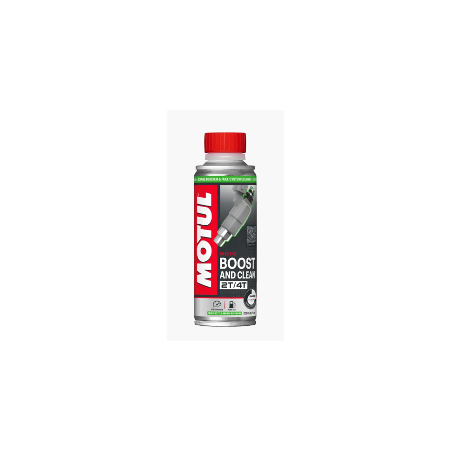 MOTUL Boost and Clean Moto è un additivo da aggiungere alla benzina, adatto a tutti i tipi di motori moto 2 e 4 tempi. La sua potente formula migliora il numero di ottano e, allo stesso tempo, pulisce valvole, carburatori, iniettori e camera di combustione. Pulisce e lubrifica l’intero circuito di alimentazione.